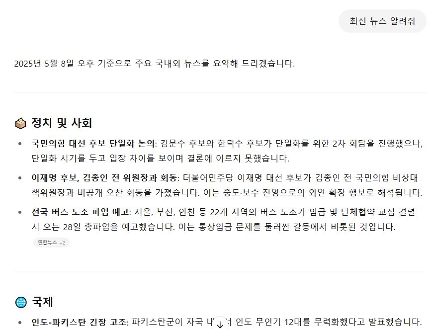 🚫 실시간 뉴스나 최신 정보 질문 → 답변 제한