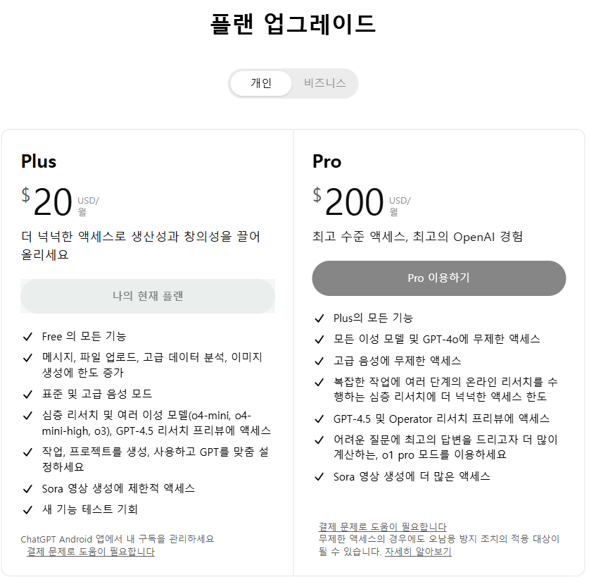 ⚡ 무료로 입문하고, 만족스러우면 Plus (월 $20) , Pro 구독(월 $200) 고려해보셔도 좋아요!