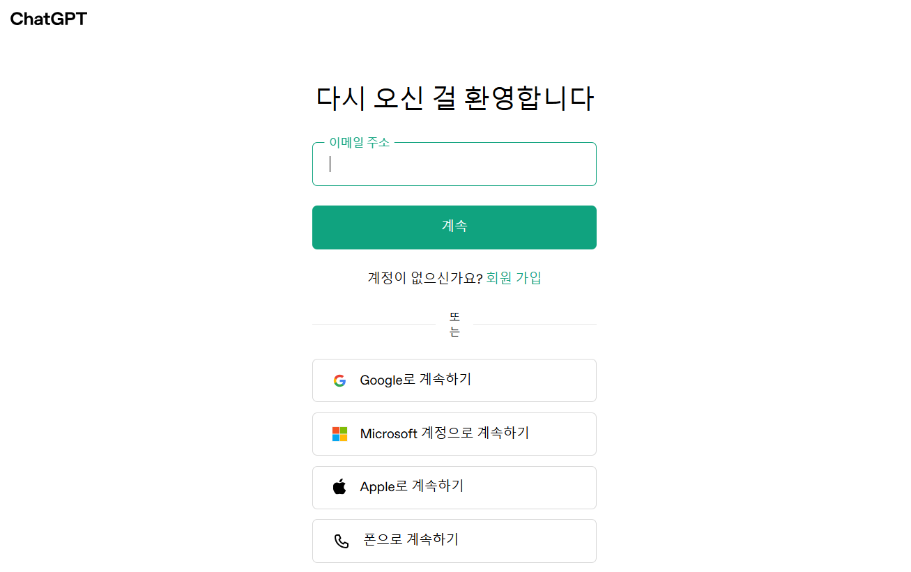 - https://chat.openai.com 접속