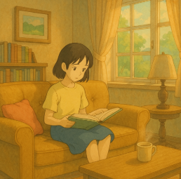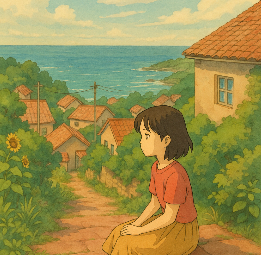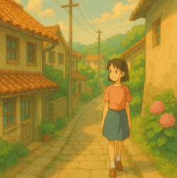 프롬프트 예시: “지브리 스타일, 해질 무렵 풀밭 언덕에 앉아 있는 소녀, 따뜻한 색감, 부드러운 조명, 수채화 질감”