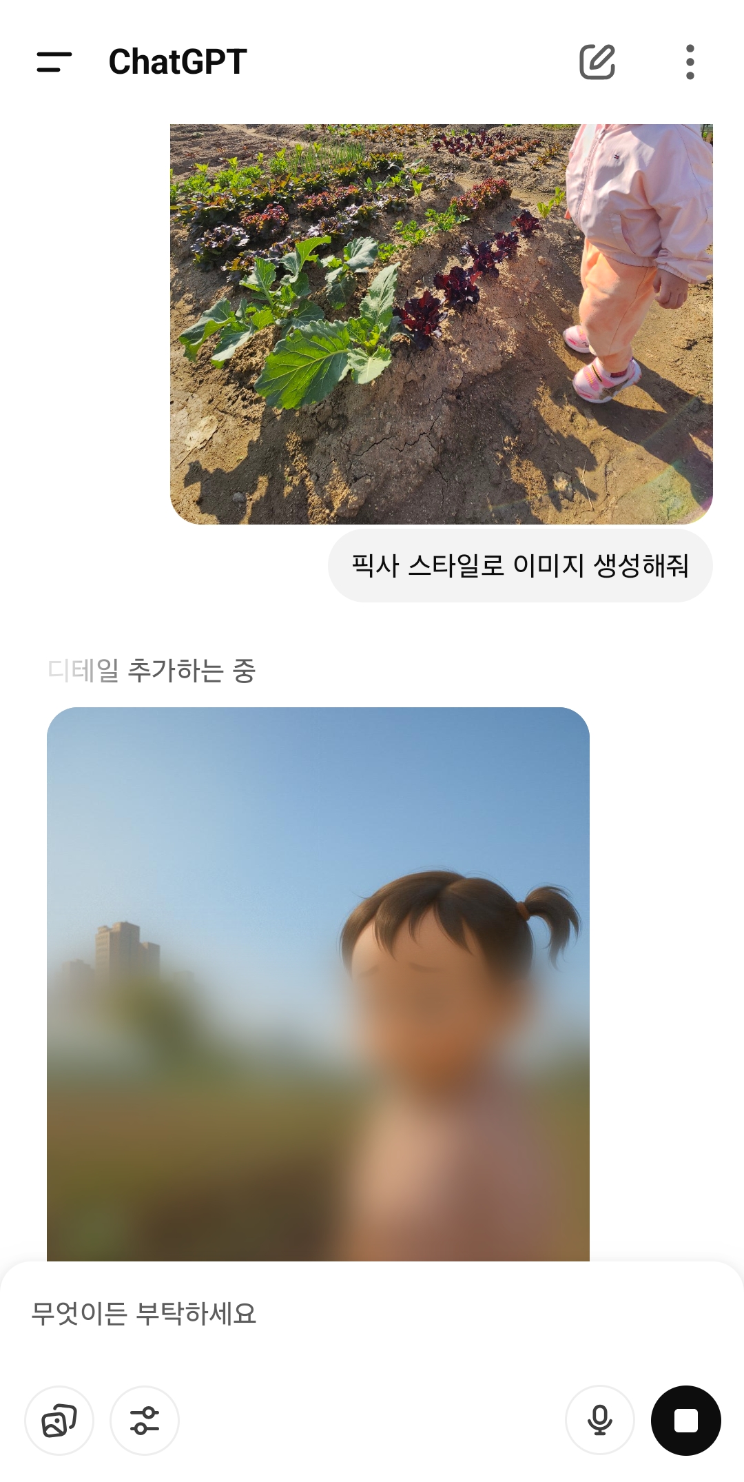 처음엔 단순히 "픽사 스타일로 변환"이라고만 했더니 결과가 조금 밋밋했어요. 디테일하게 요구하니까 확실히 퀄리티가 달라지더라고요! 🎨