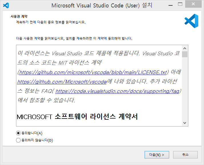 다음 순서에서 Windows 기준으로 VS Code 설치 방법을 자세하게 설명합니다.