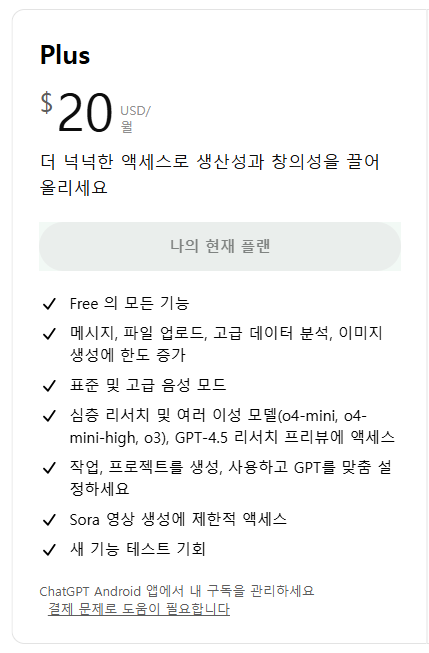 여러분이 텍스트 기반 업무를 많이 하고, 이미지 생성이나 간단한 자동화 기능이 필요하다면 Plus 플랜으로도 충분합니다. 저도 초반에는 Plus만 사용했는데, 웬만한 업무는 다 해결되더라고요.